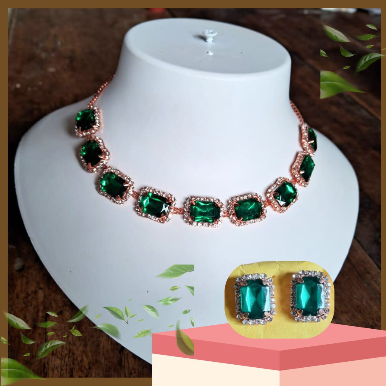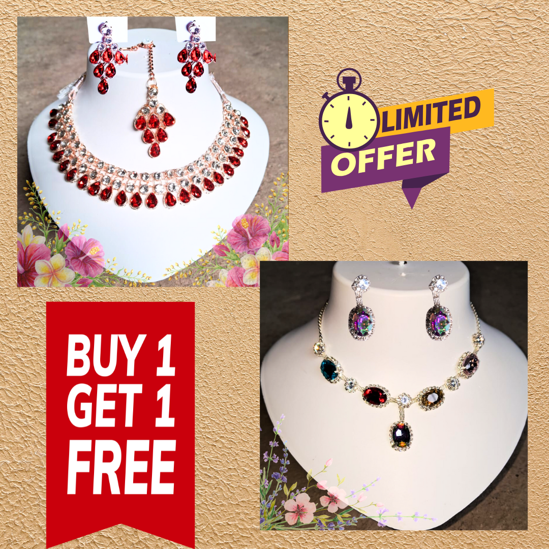COMBO SET, wow amazing Jewelry set on a mannequin with, buy 1 get 1 Free, offer on UP brown background . dont miss