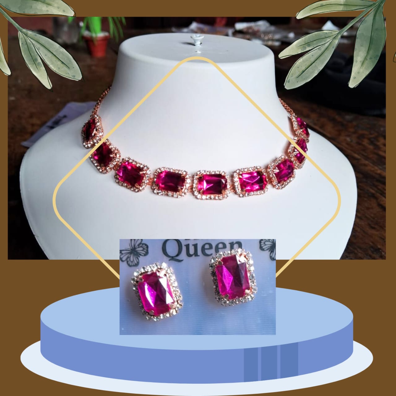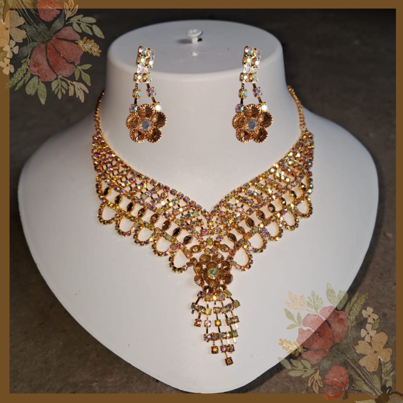 COMBO SET, wow amazing Jewelry set on a mannequin with, buy 1 get 1 Free, offer on UP brown background . dont miss